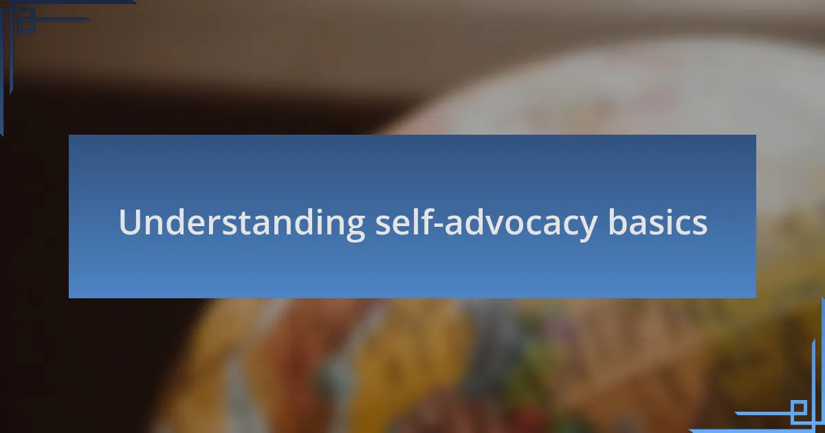 Understanding the basics of self-advocacy involves not just speaking up, but also knowing your rights. I vividly remember reading about the accommodations available for individuals with dyslexia—this knowledge fueled my confidence. It made me realize that knowing what I was entitled to could completely change how I approached challenges. Have you taken the time to learn about your rights and resources?